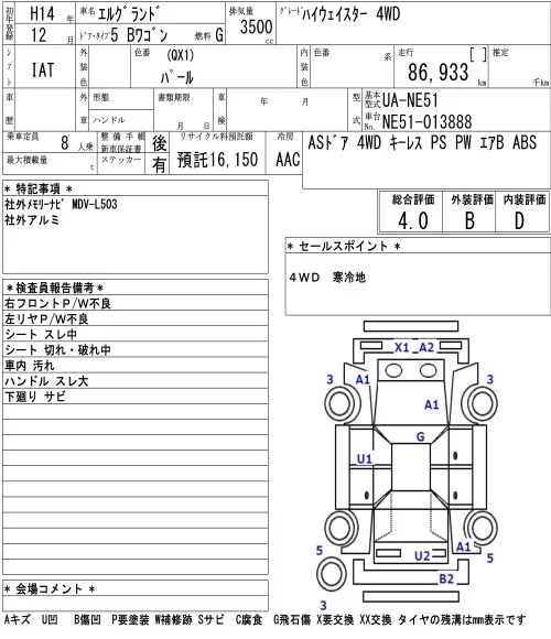 Nissan ELGRAND с аукциона Японии NAA Nagoya лот № 4118