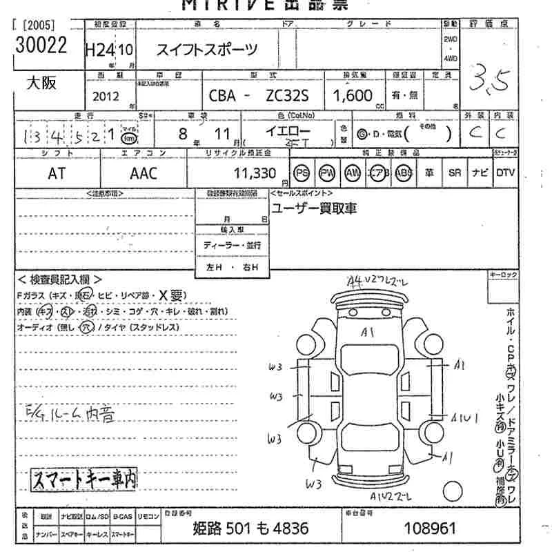 Suzuki SWIFT с аукциона Японии MIRIVE Osaka лот № 30022
