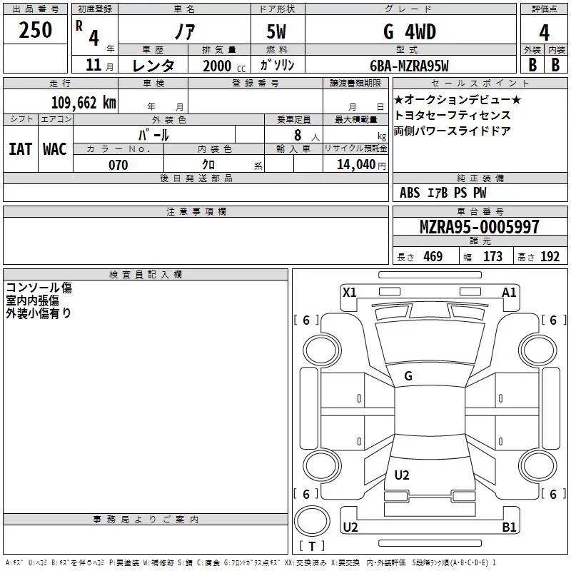 Toyota NOAH с аукциона Японии TAA Chubu лот № 250