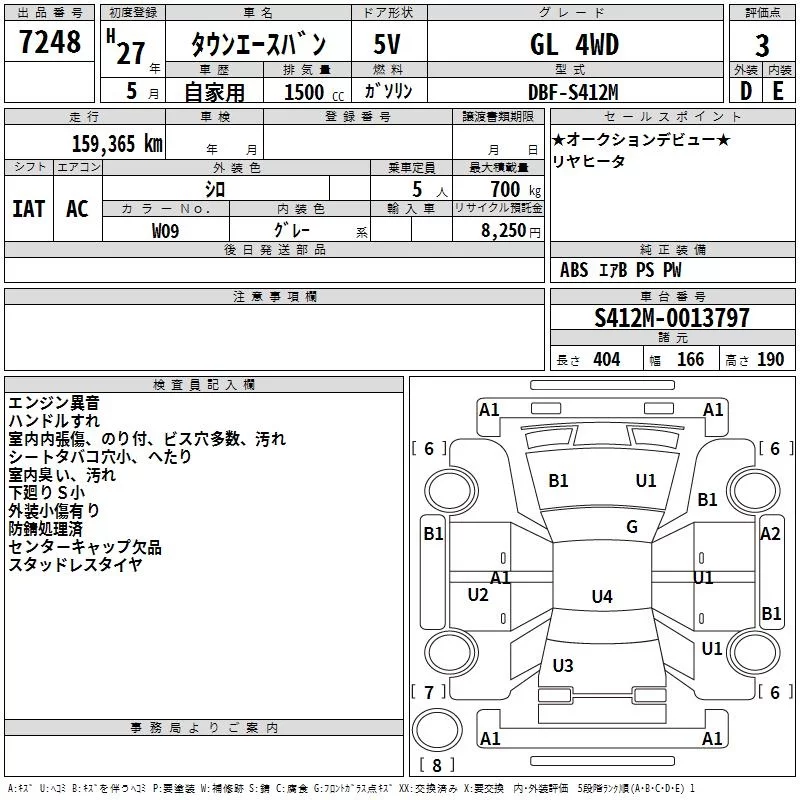 Toyota TOWN ACE VAN с аукциона Японии TAA Hokkaido лот № 7248