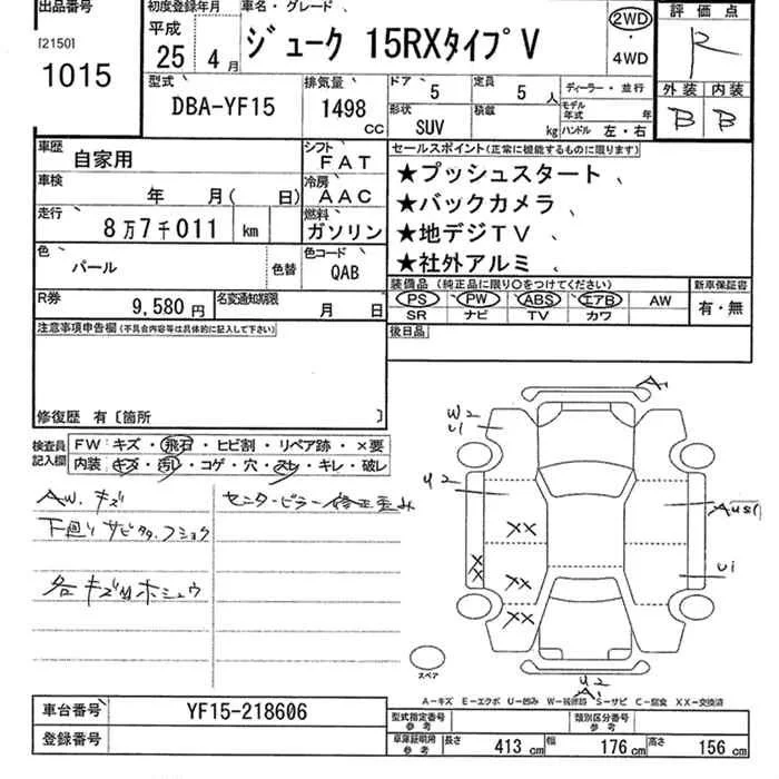 Nissan JUKE с аукциона Японии JU Kanagawa лот № 1015