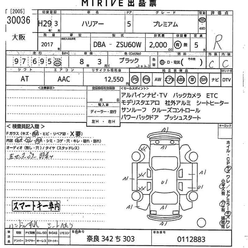 Toyota HARRIER с аукциона Японии MIRIVE Osaka лот № 30036