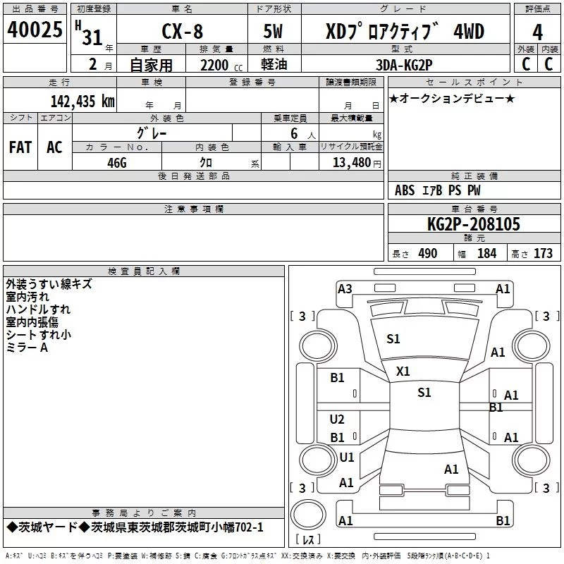 Mazda CX-8 с аукциона Японии TAA Kanto лот № 40025
