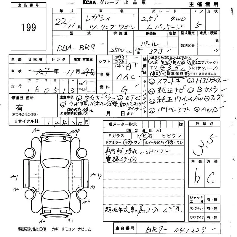 Subaru LEGACY с аукциона Японии KCAA Fukuoka лот № 199