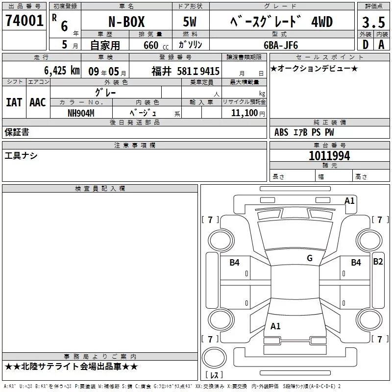 Honda N BOX с аукциона Японии TAA Chubu лот № 74001
