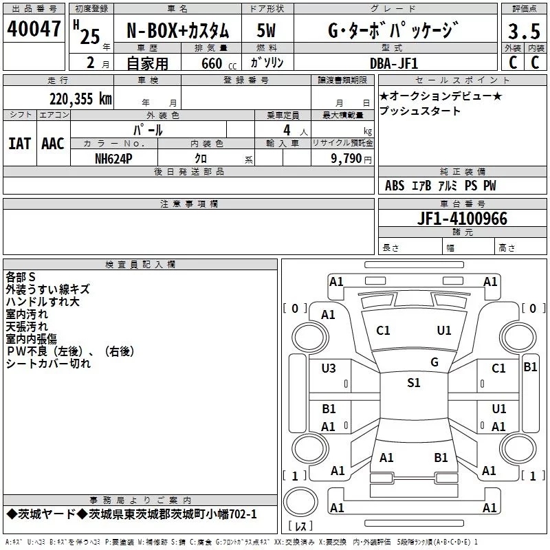 Honda N BOX PLUS с аукциона Японии TAA Kanto лот № 40047