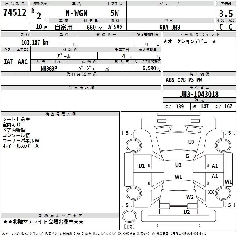 Honda N WGN с аукциона Японии TAA Chubu лот № 74512