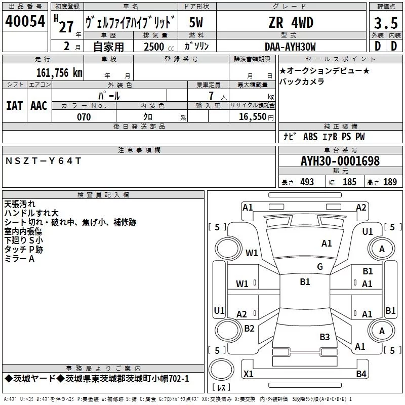 Toyota VELLFIRE с аукциона Японии TAA Kanto лот № 40054
