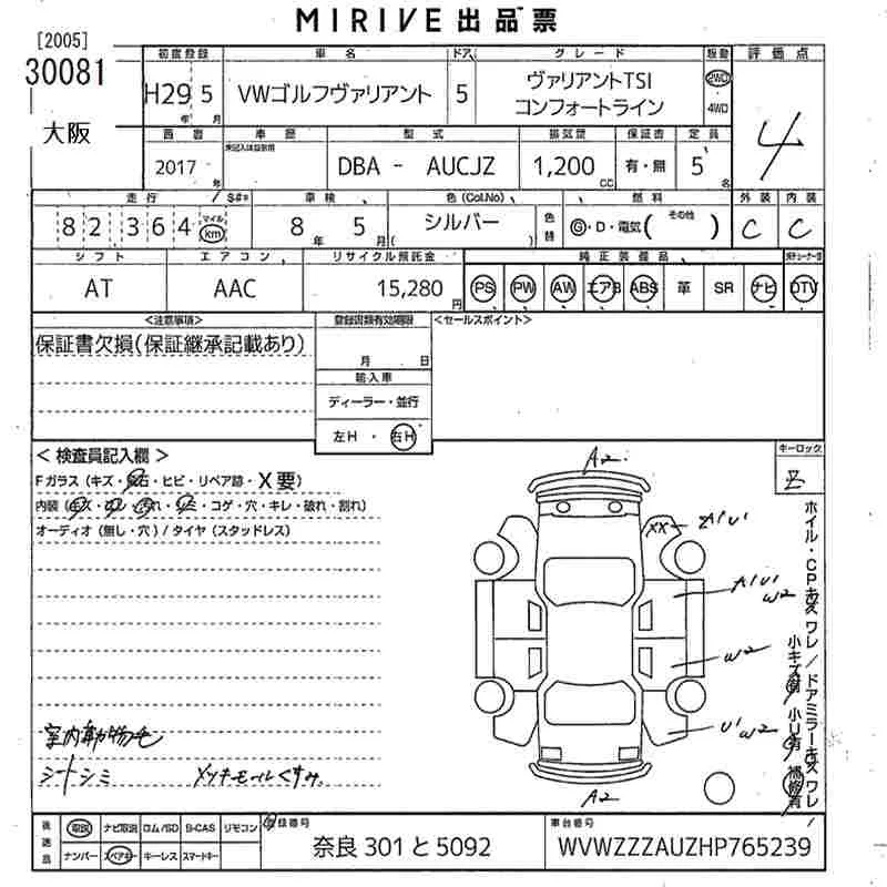 Volkswagen GOLF VARIANT с аукциона Японии MIRIVE Osaka лот № 30081