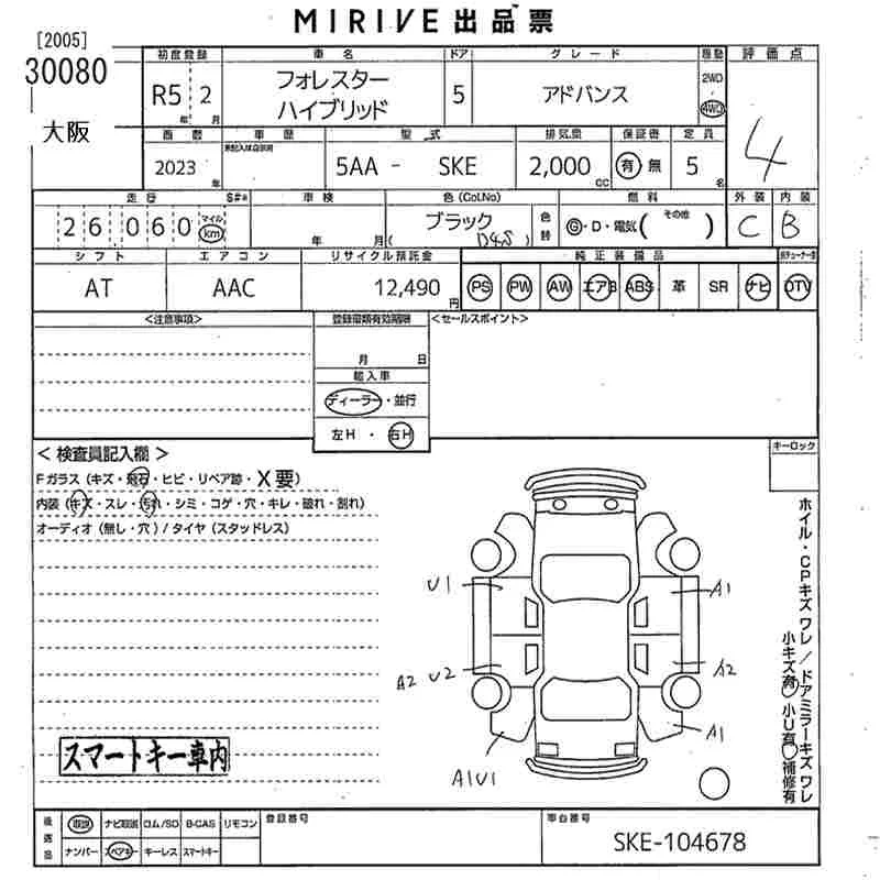 Subaru FORESTER с аукциона Японии MIRIVE Osaka лот № 30080