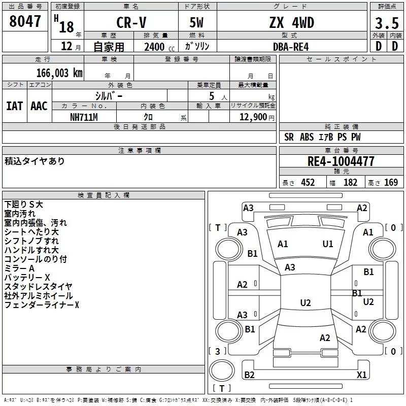 Honda CR-V с аукциона Японии TAA Hokkaido лот № 8047