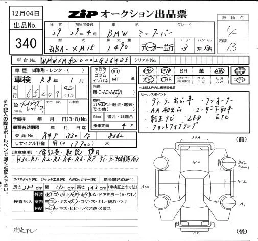BMW MINI с аукциона Японии ZIP Osaka лот № 340