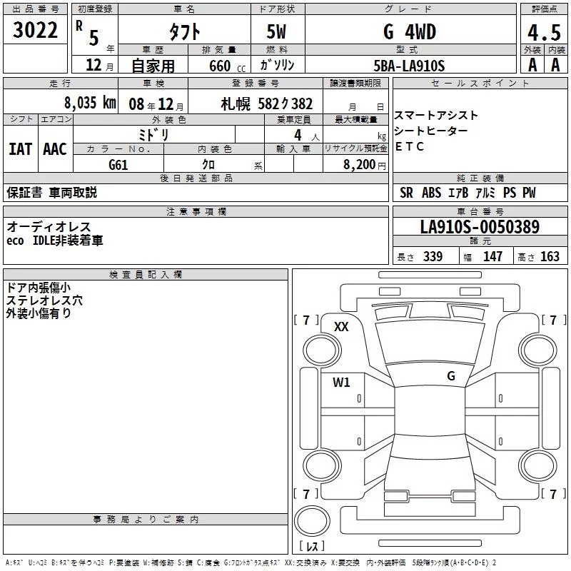 Daihatsu TAFT с аукциона Японии TAA Hokkaido лот № 3022