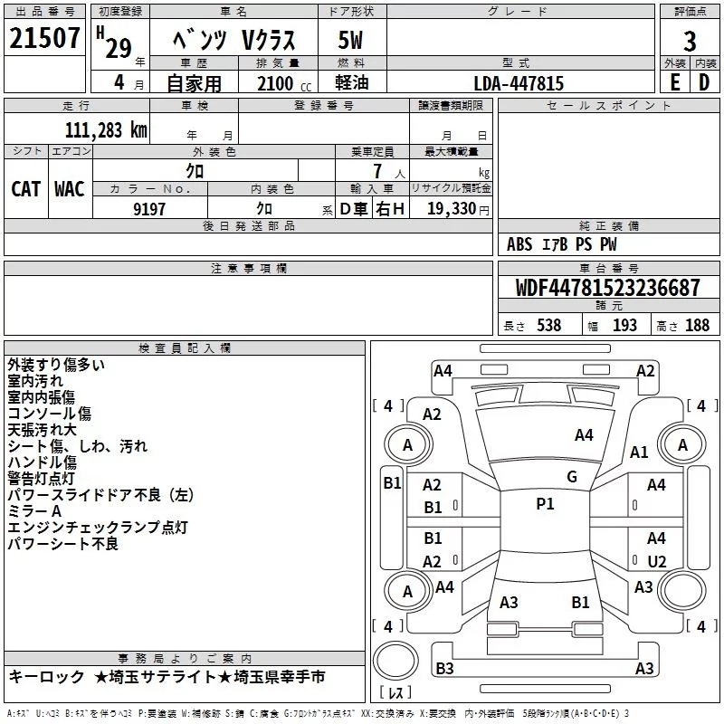Mercedes-Benz V CLASS с аукциона Японии TAA Kanto лот № 21507