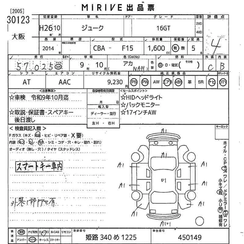 Nissan JUKE с аукциона Японии MIRIVE Osaka лот № 30123