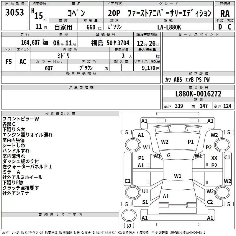 Daihatsu Copen с аукциона Японии TAA Tohoku лот № 3053