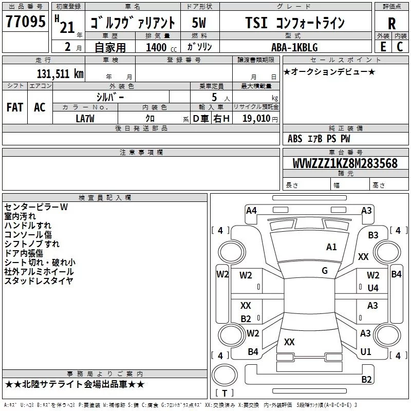 Volkswagen GOLF VARIANT с аукциона Японии TAA Chubu лот № 77095