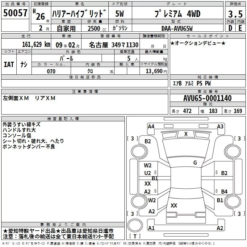 Toyota HARRIER с аукциона Японии TAA Chubu лот № 50057