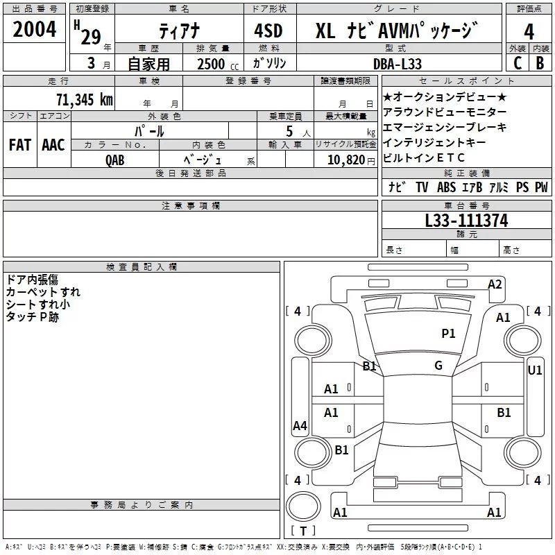 Nissan TEANA с аукциона Японии TAA Chubu лот № 2004