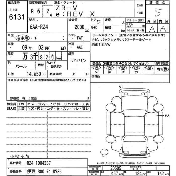 Honda ZR-V с аукциона Японии JU Kanagawa лот № 6131