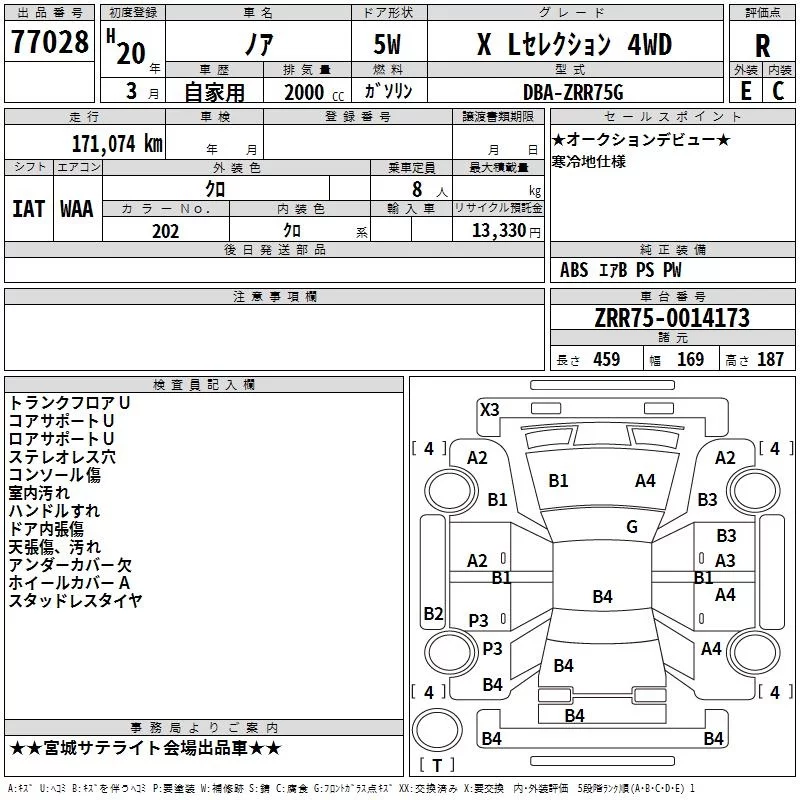 Toyota NOAH с аукциона Японии TAA Tohoku лот № 77028