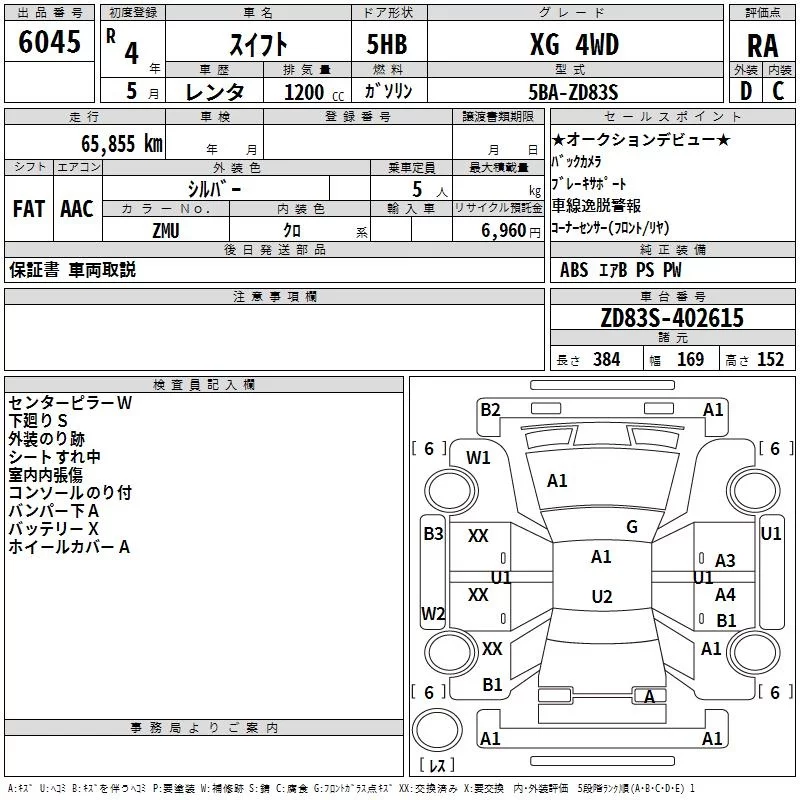 Suzuki SWIFT с аукциона Японии TAA Hokkaido лот № 6045