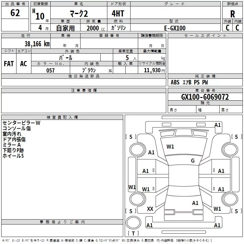 Toyota MARK II с аукциона Японии TAA Tohoku лот № 62