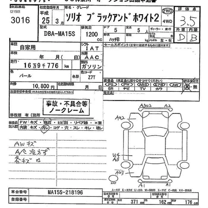 Suzuki SOLIO с аукциона Японии JU Kanagawa лот № 3016