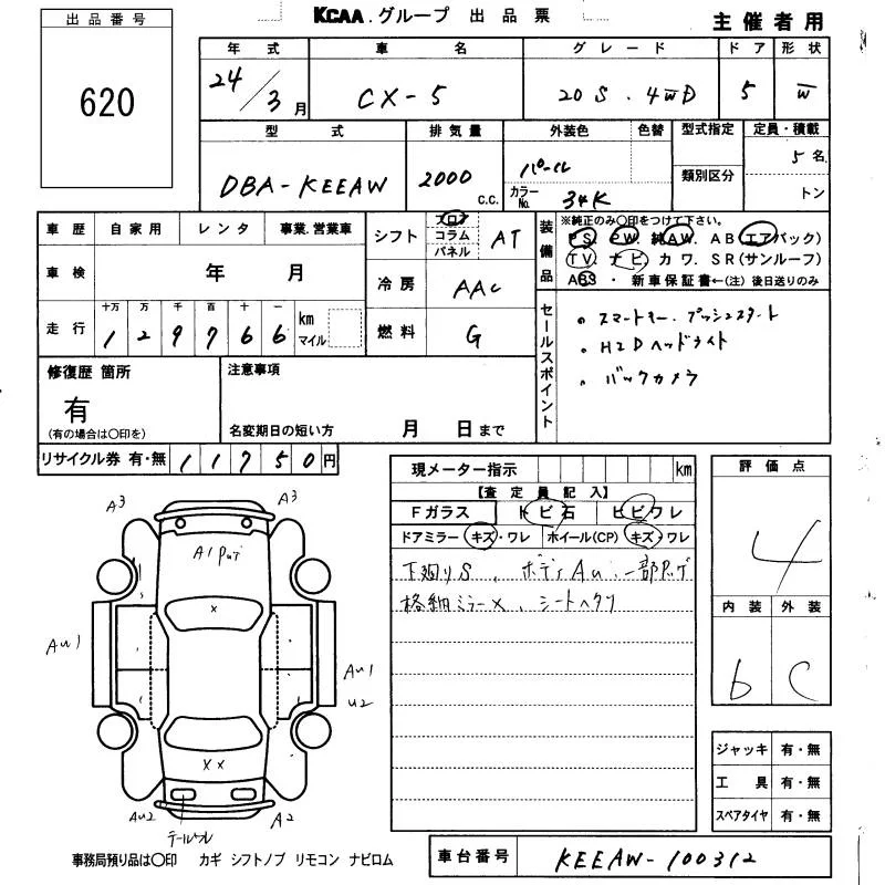 Mazda CX-5 с аукциона Японии KCAA Fukuoka лот № 620