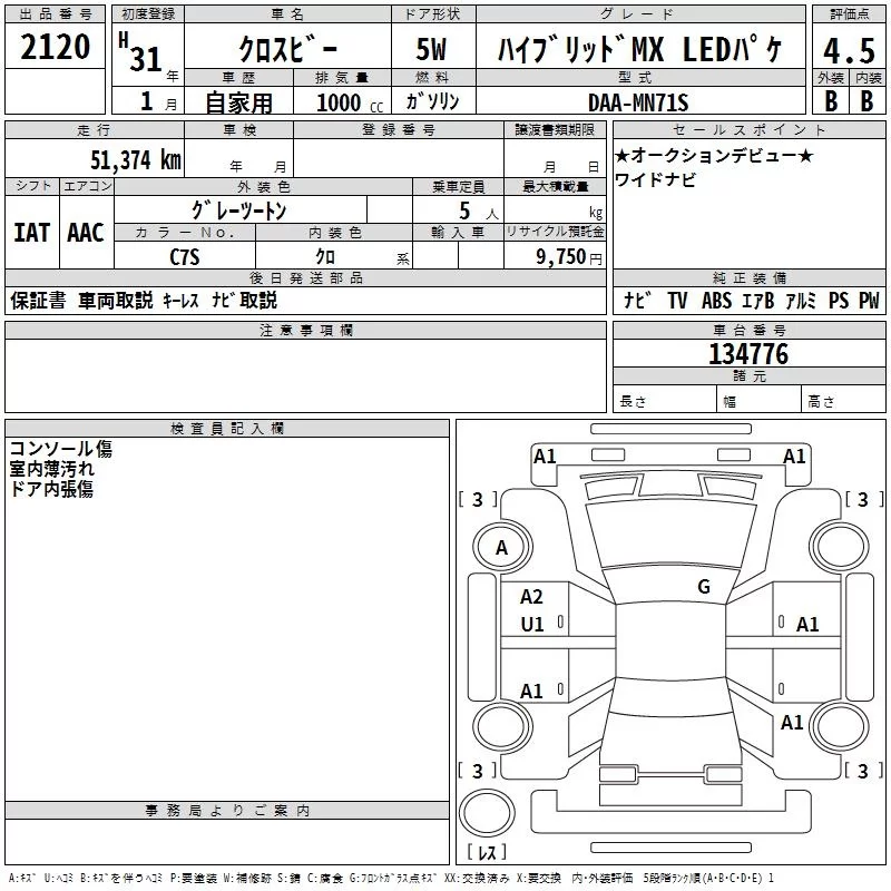 Suzuki XBEE с аукциона Японии TAA Chubu лот № 2120
