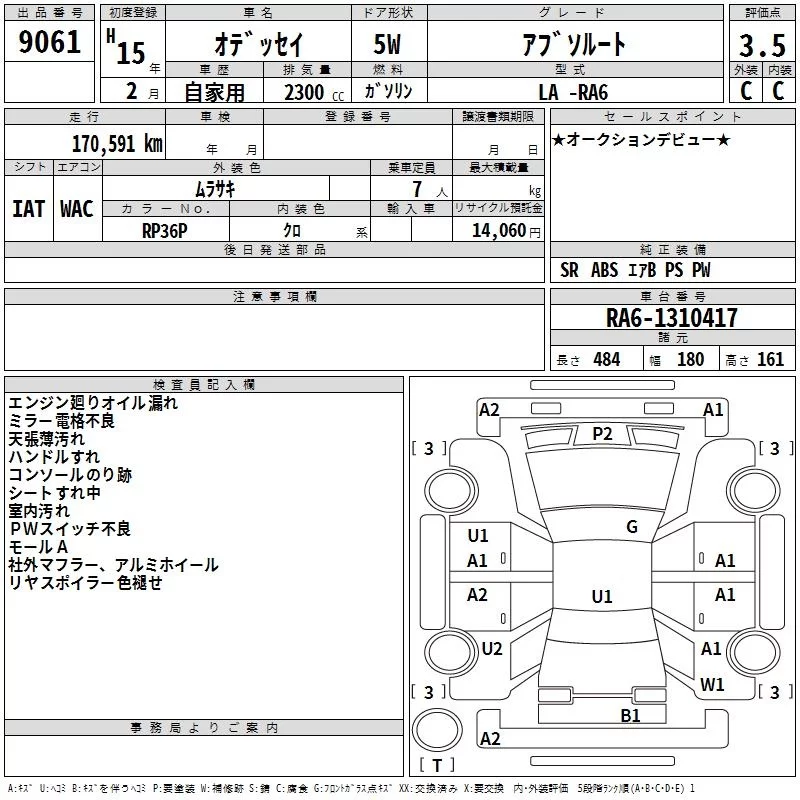 Honda ODYSSEY с аукциона Японии TAA Kanto лот № 9061