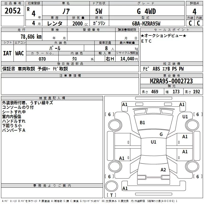 Toyota NOAH с аукциона Японии TAA Hokkaido лот № 2052