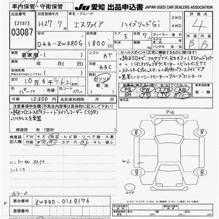 Toyota ESQUIRE с аукциона Японии JU Aichi лот № 3087