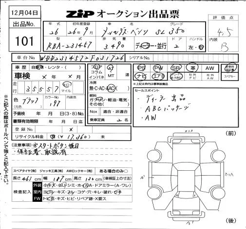 Mercedes-Benz SL SERIES с аукциона Японии ZIP Osaka лот № 101