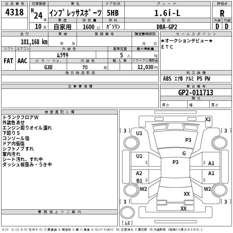 Subaru IMPREZA с аукциона Японии TAA Chubu лот № 4318