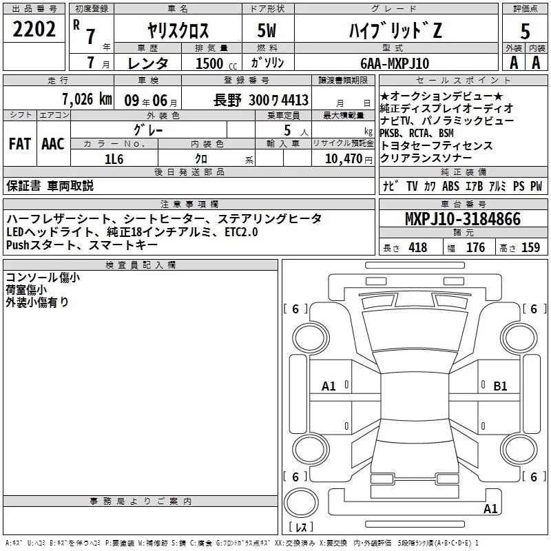 Toyota YARIS CROSS с аукциона Японии TAA Chubu лот № 2202