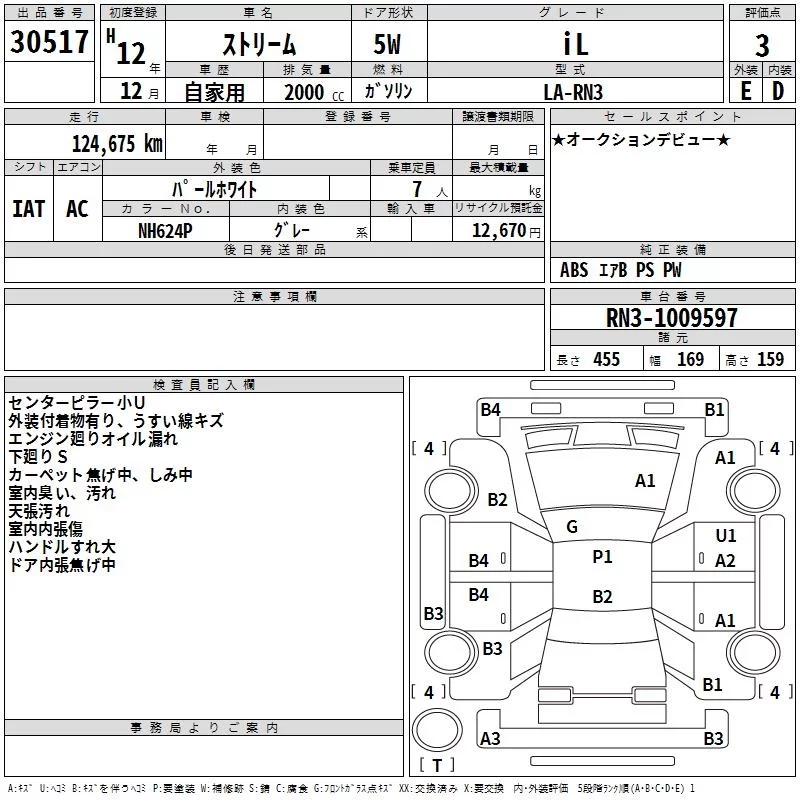 Honda STREAM с аукциона Японии TAA Chubu лот № 30517