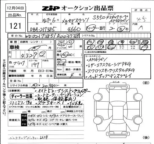 Аукционный лист  S CLASS лот № 121