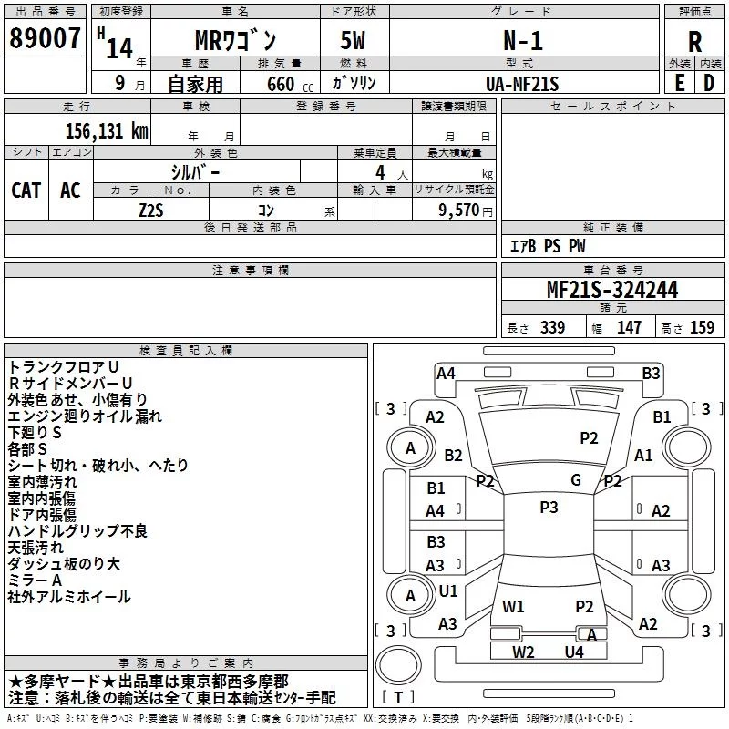 Suzuki MRWAGON с аукциона Японии TAA Kanto лот № 89007