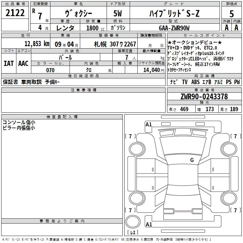 Toyota VOXY с аукциона Японии TAA Hokkaido лот № 2122