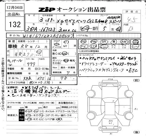 Mercedes-Benz GLE-Class с аукциона Японии ZIP Osaka лот № 132