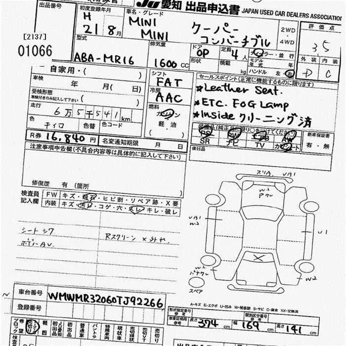 BMW MINI с аукциона Японии JU Aichi лот № 1066