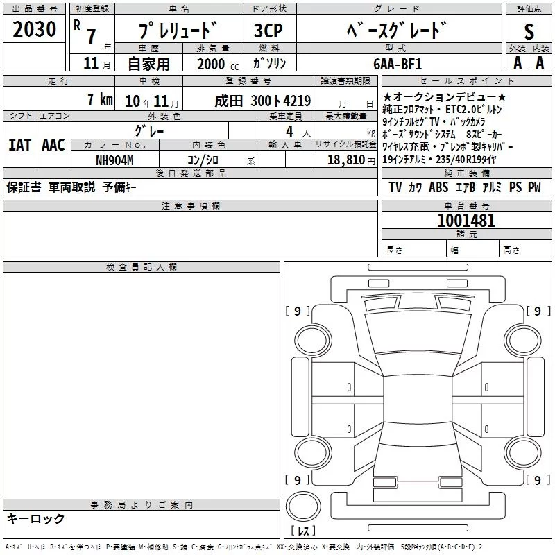 Honda PRELUDE с аукциона Японии TAA Kanto лот № 2030