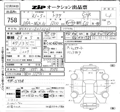 Toyota C-HR с аукциона Японии ZIP Osaka лот № 758
