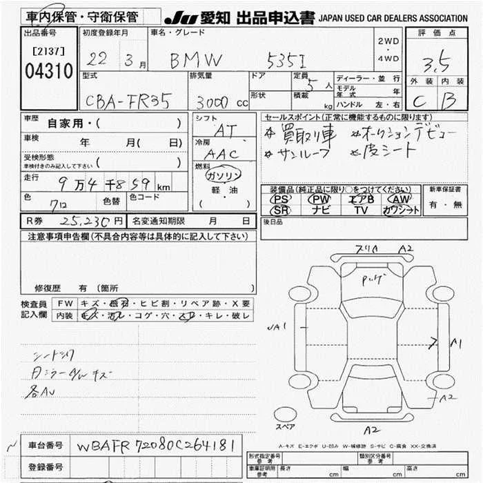 BMW 5-Series с аукциона Японии JU Aichi лот № 4310