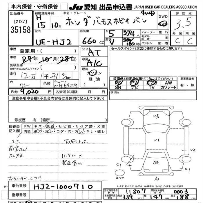 Honda VAMOS с аукциона Японии JU Aichi лот № 35158