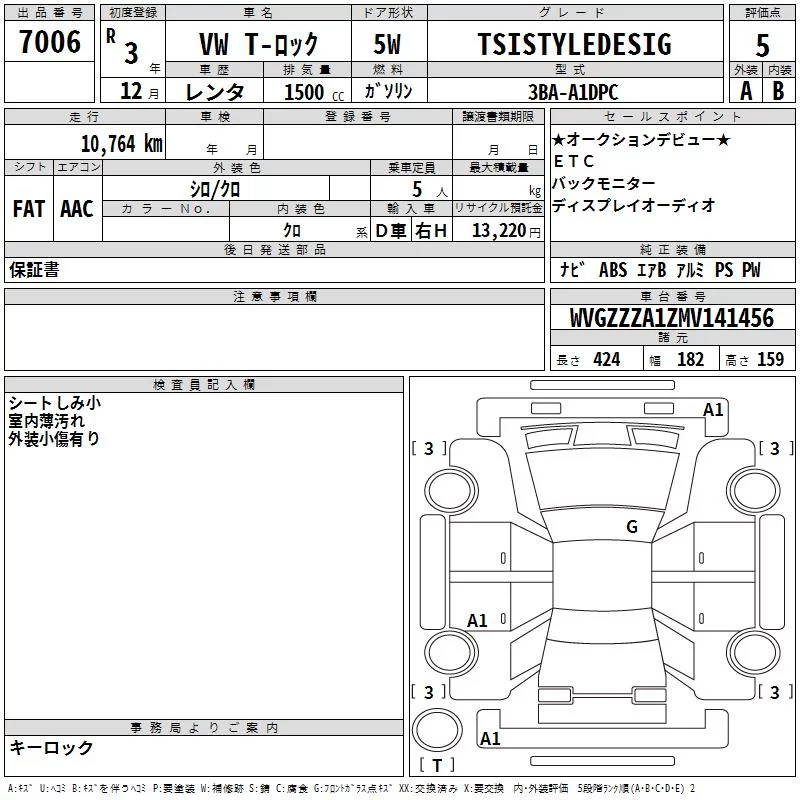 Volkswagen T-ROC с аукциона Японии TAA Kanto лот № 7006