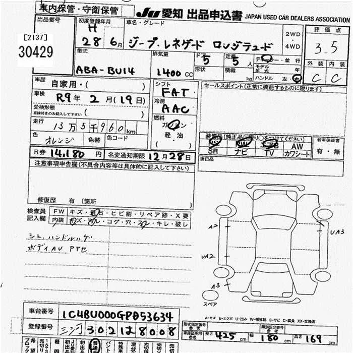 Chrysler JEEP RENEGADE с аукциона Японии JU Aichi лот № 30429