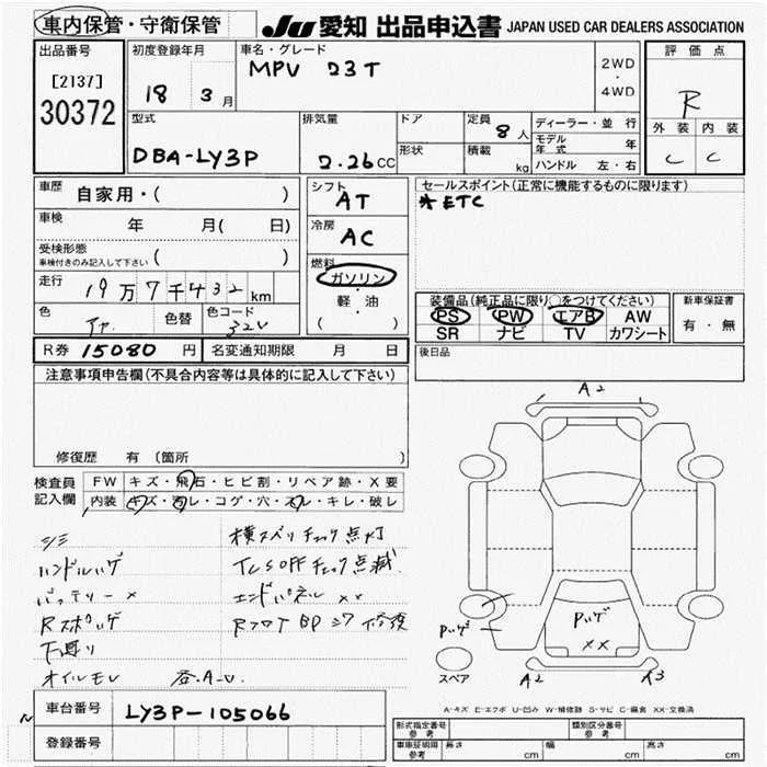 Mazda MPV с аукциона Японии JU Aichi лот № 30372