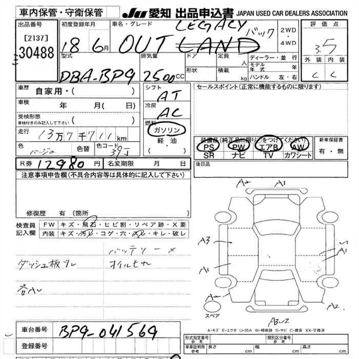Subaru LEGACY OUTBACK с аукциона Японии JU Aichi лот № 30488